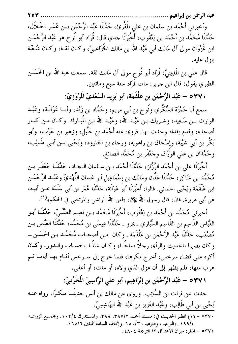 5370 عبد الرحمن بن علقمة، أبو يزيد السعدي الْمَرْوَزِيّ: