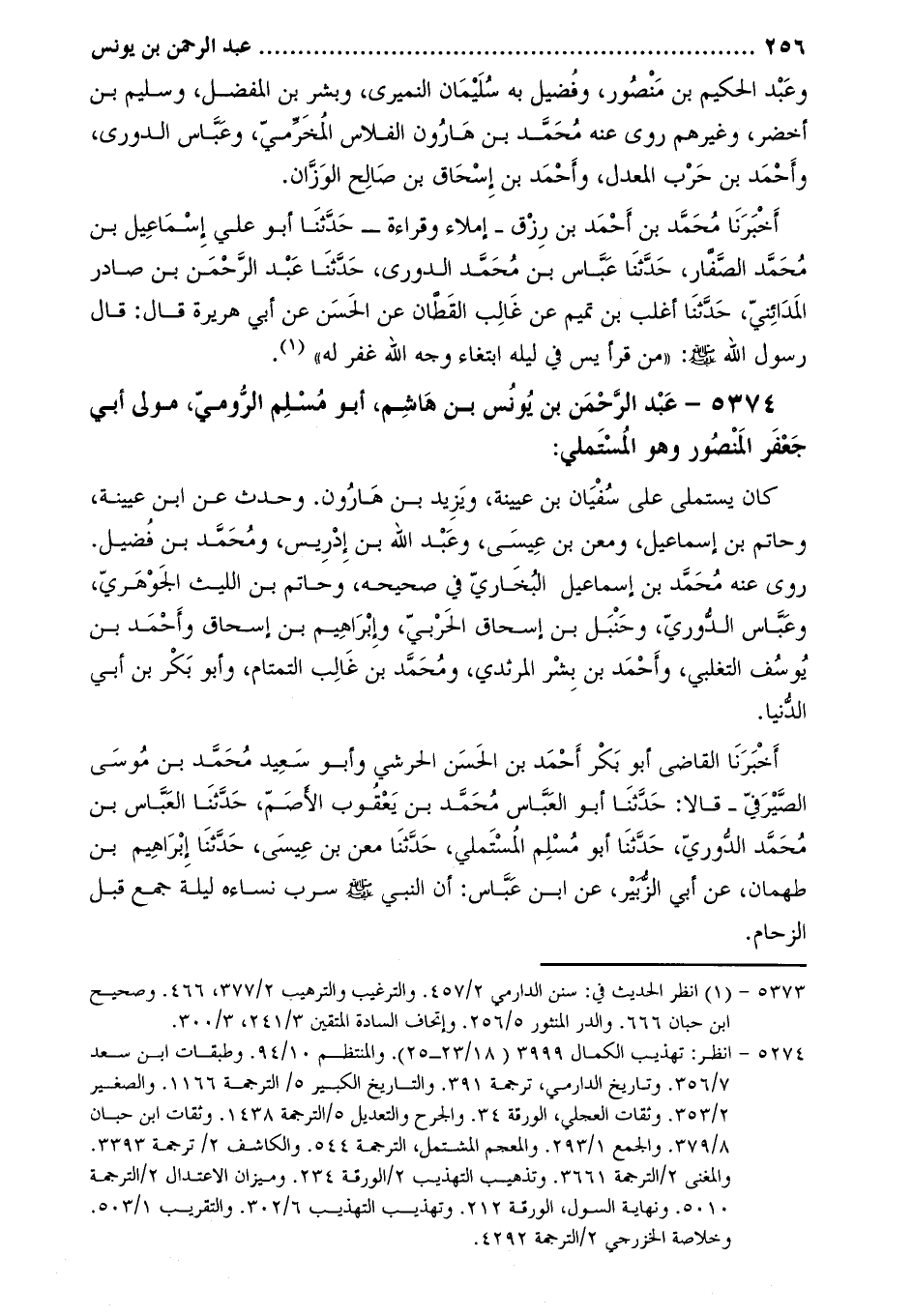 5374 عبد الرحمن بن يونس بن هاشم، أبو مسلم الرومي، مولى أبي جعفر المنصور وهو المستملي [2] :