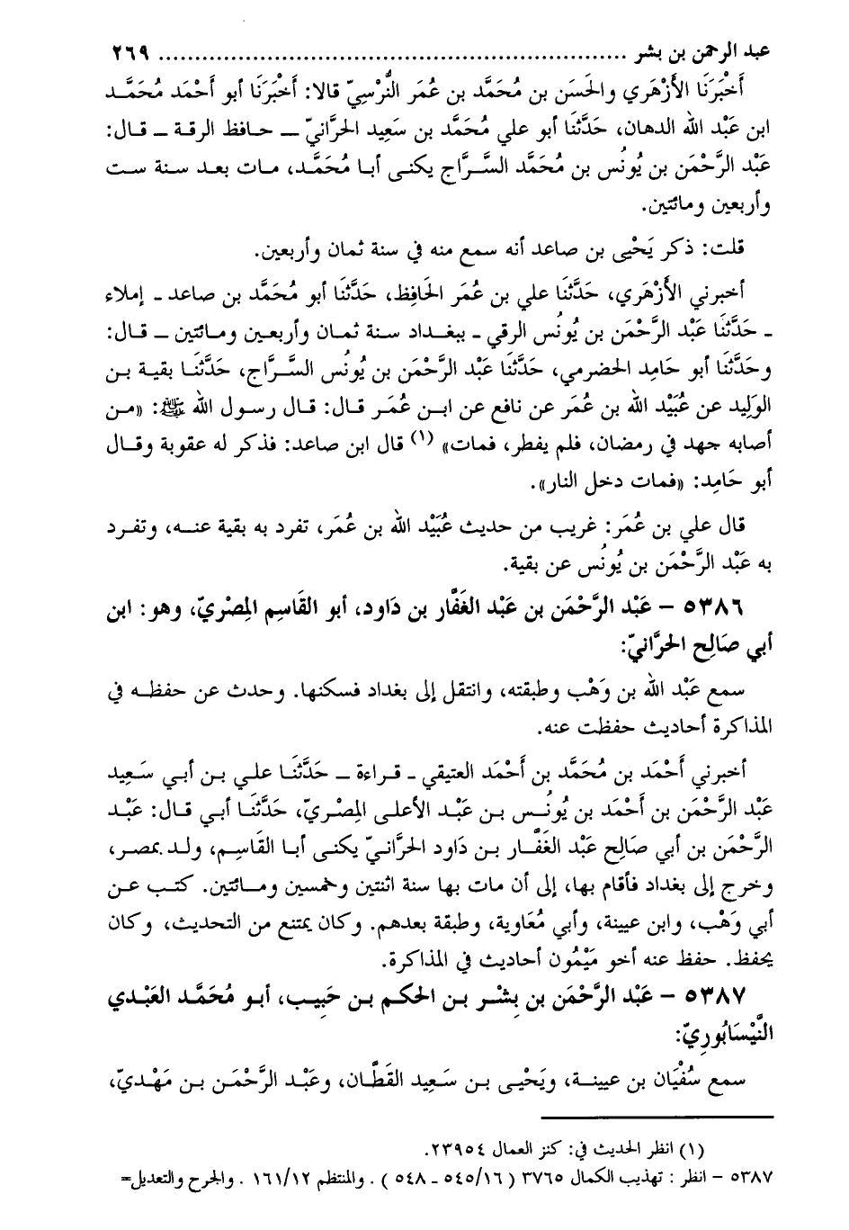 5387 عبد الرحمن بن بشر بن الحكم بن حبيب، أبو مُحَمَّد العبدي النيسابوري [2] :