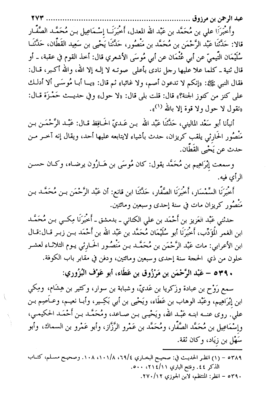 [2] 5390 انظر: المنتظم، لابن الجوزي 12/270.