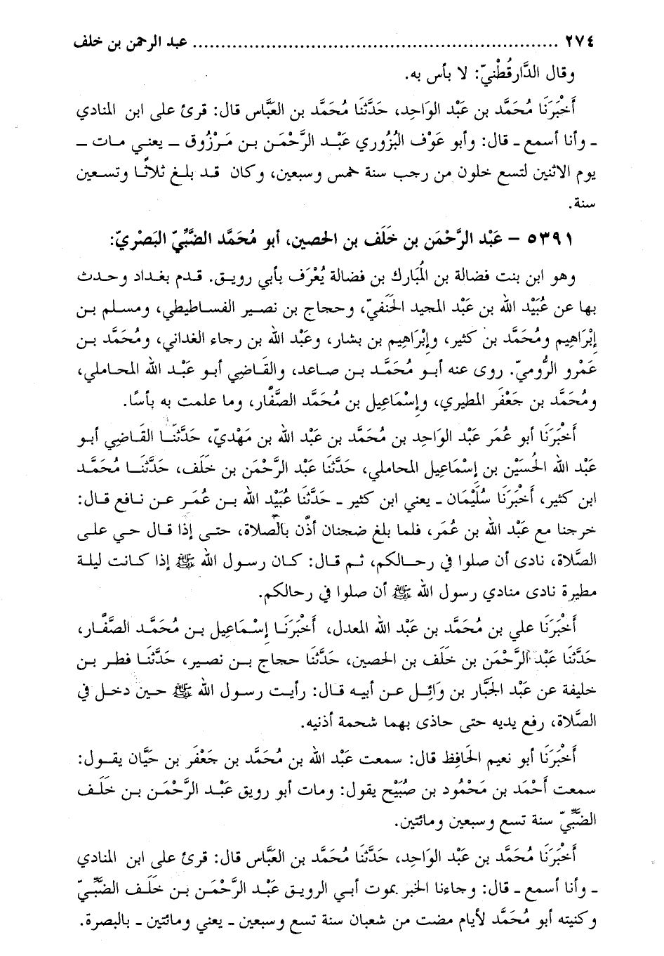 5391- عبد الرحمن بن خلف بن الحصين، أبو مُحَمَّد الضبي البصري: