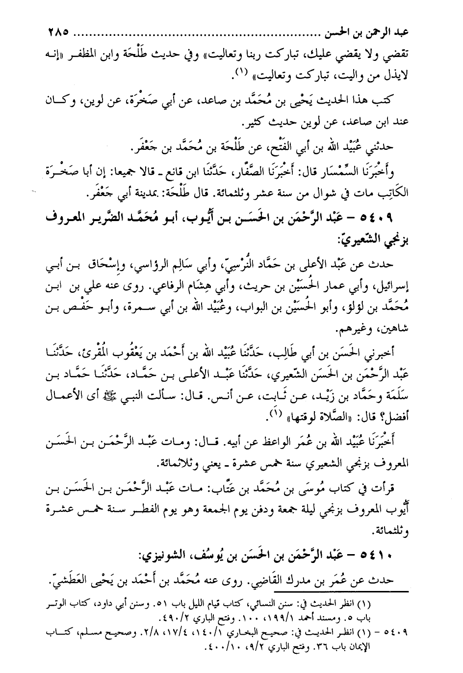 5409 عبد الرحمن بن الْحَسَن بن أيوب، أبو مُحَمَّد الضرير المعروف بزنجي الشعيري: