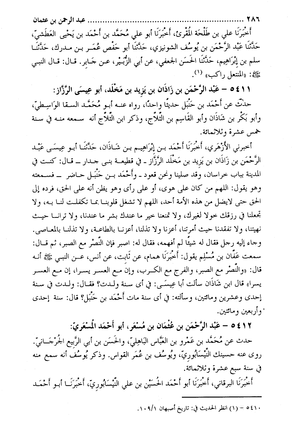[1] 5410 انظر الحديث في: تاريخ أصبهان 1/109.