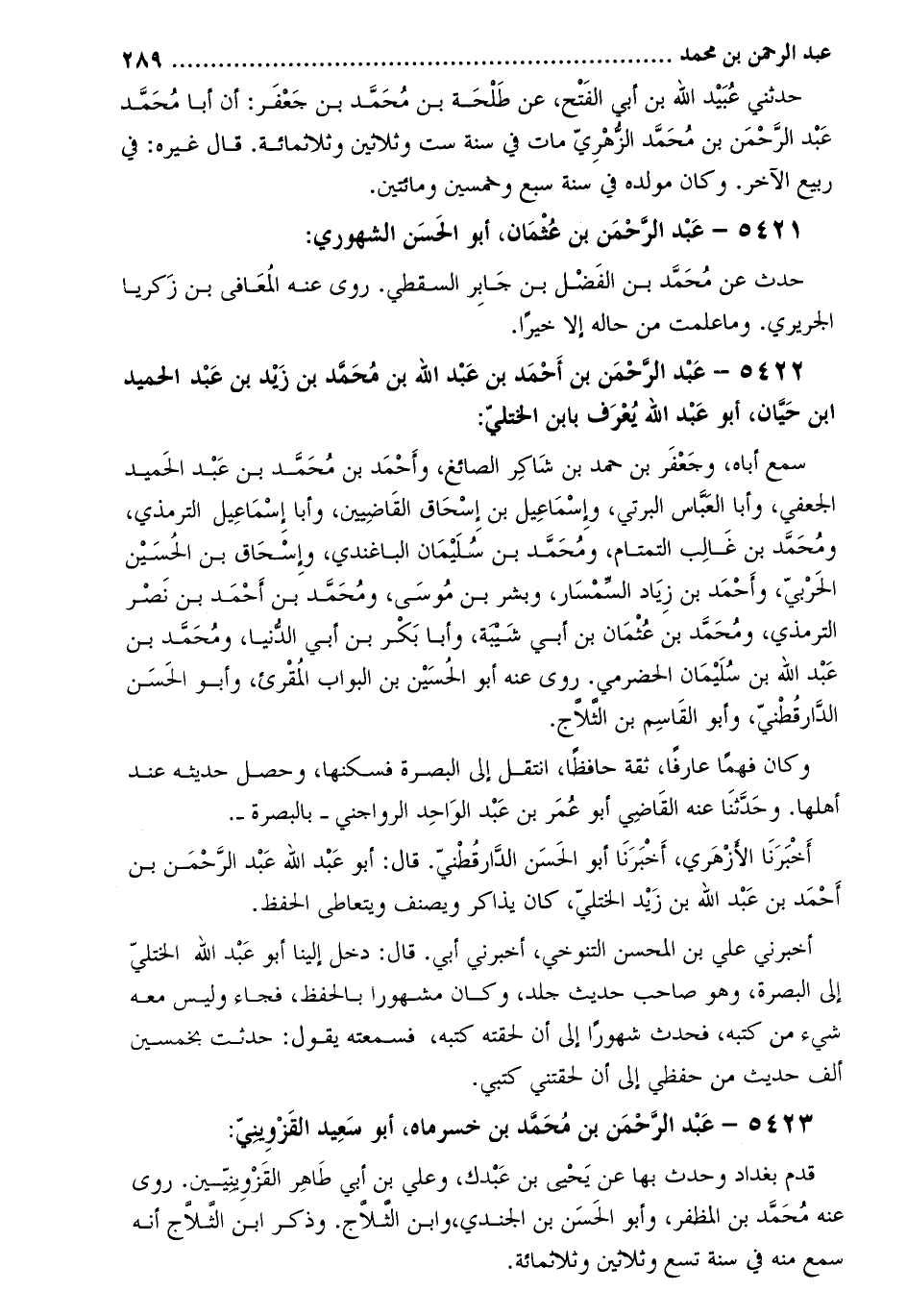 5422 عبد الرحمن بْن أَحْمَد بْن عَبْد اللَّه بْن مُحَمَّد بْن زَيْد بْن عَبْد الحميد ابن حيان، أبو عبد اللَّه يعرف بابن الختلي: