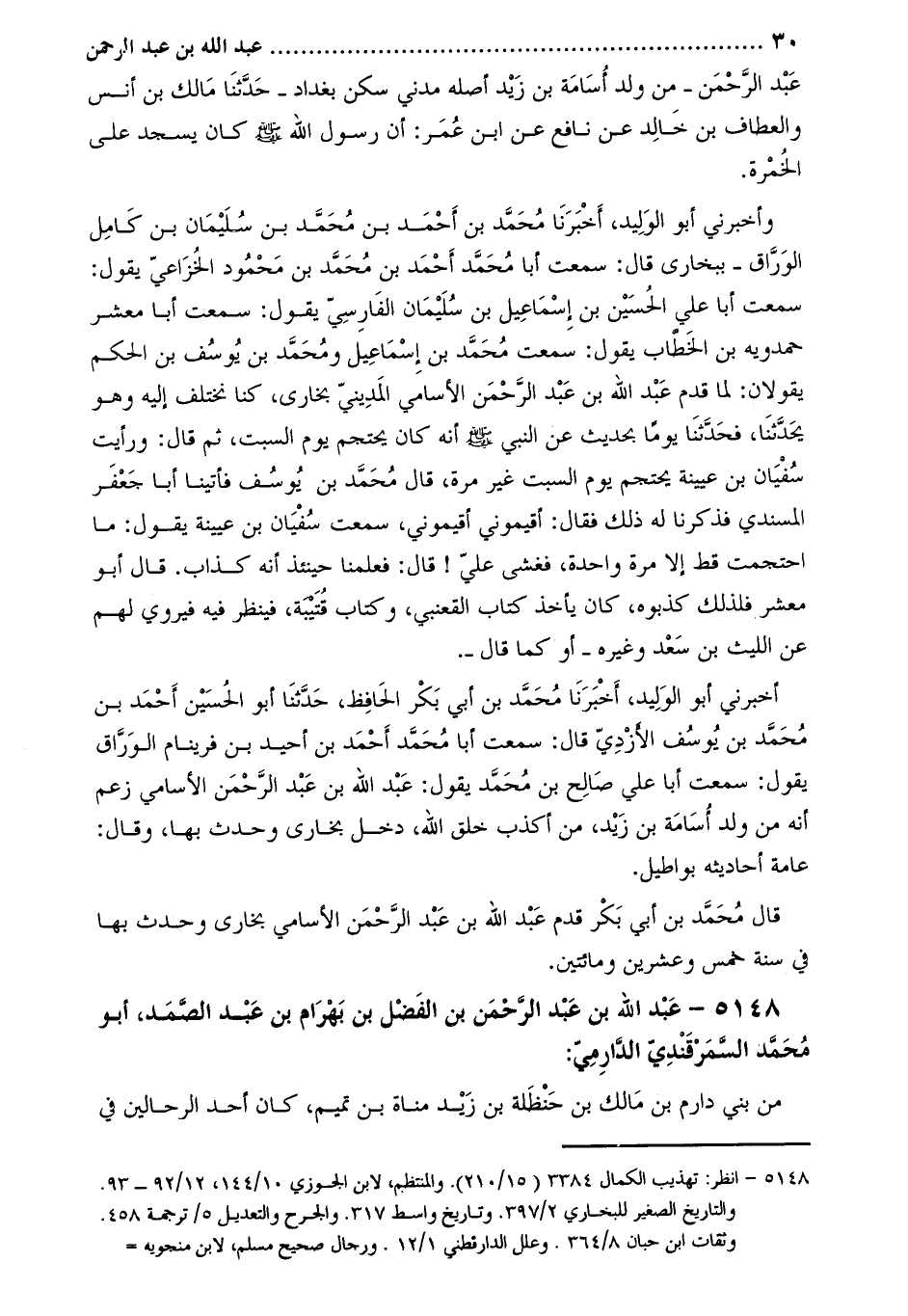 5148 عبد اللَّه بن عبد الرحمن بن الفضل بن بَهرام بن عبد الصمد، أبو مُحَمَّد السمرقندي الدارمي [1] :