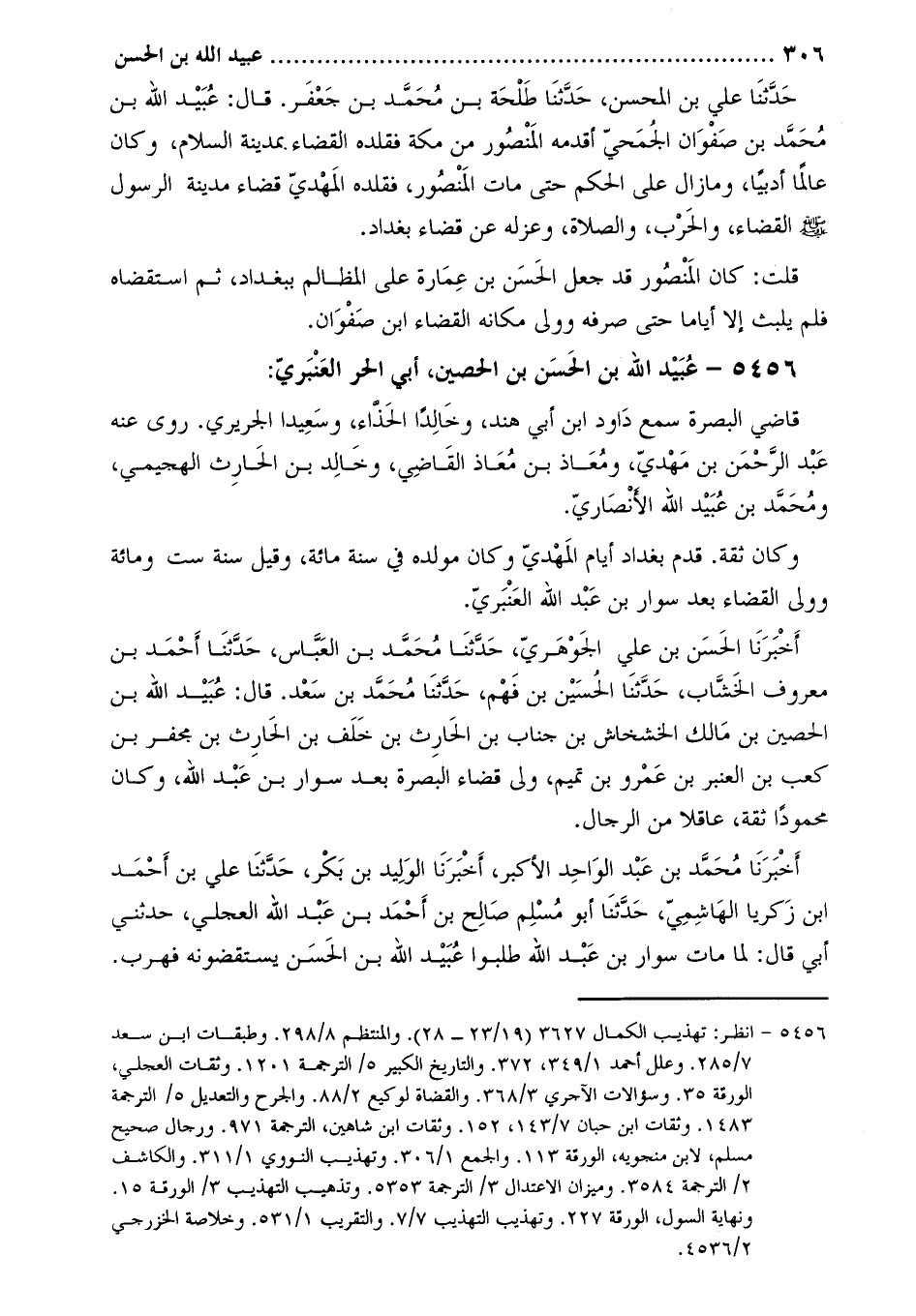 5456 عبيد الله بن الحسن بن الحصين، أبي الحر العنبري [1] :