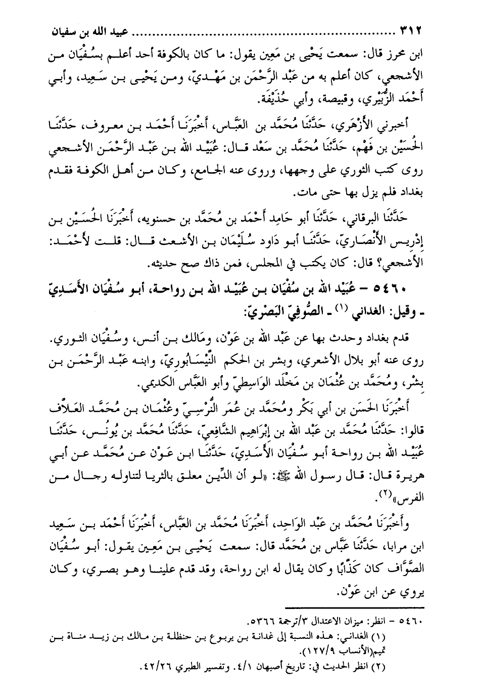 5460 [1] عبيد الله بْنُ سُفْيَانَ بْنِ عُبَيْدِ اللَّهِ بْنِ رَوَاحَةَ، أبو سفيان الأسدي- وقيل: الغداني [2] الصوفي البصري: