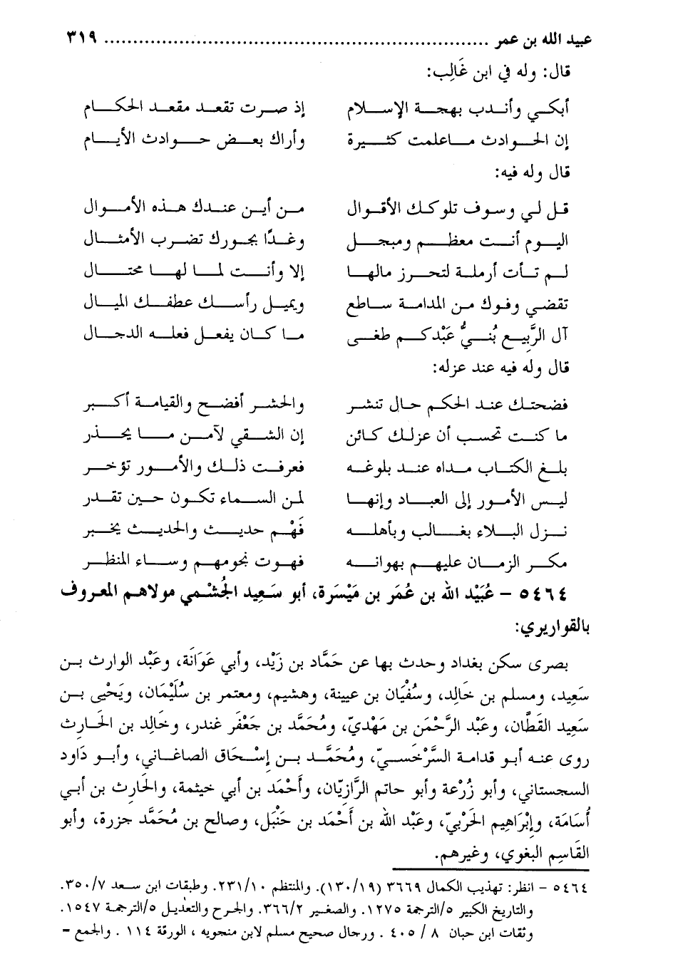 5464 عبيد الله بن عمر بن ميسرة، أبو سعيد الجشمي مولاهم المعروف بالقواريري [1] :