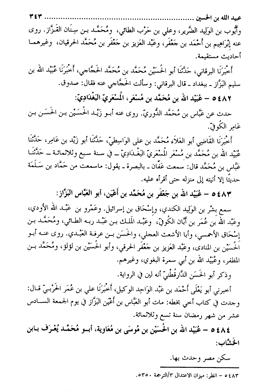 5484- عبيد الله بن الحسين بن موسى بن معاوية، أبو محمد يعرف بابن الخشاب: