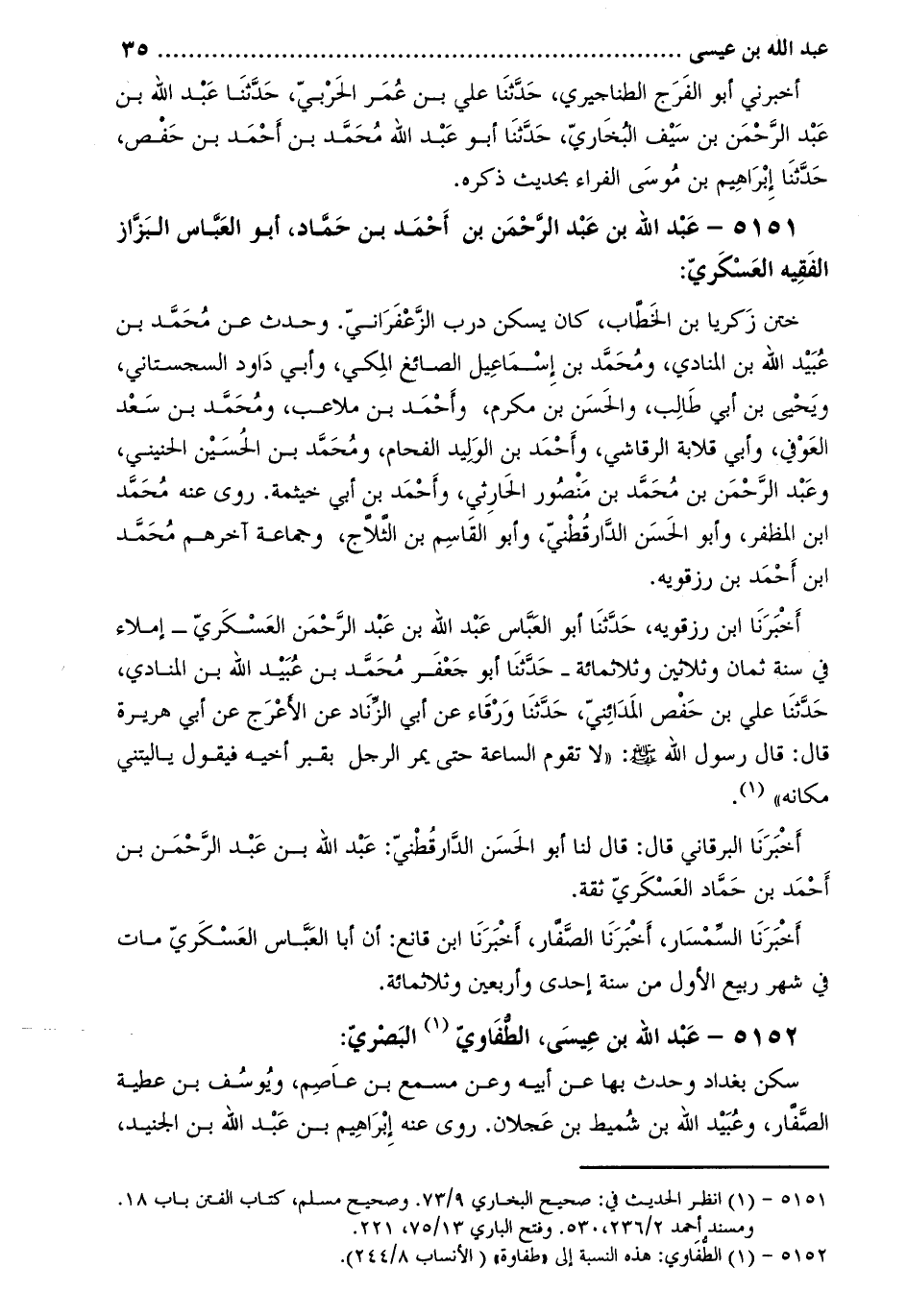 5151 عَبْدُ اللَّه بْنُ عَبْدِ الرَّحْمَنِ بْنِ أَحْمَد بن حماد، أبو العباس البزاز الفقيه العسكري [1] :