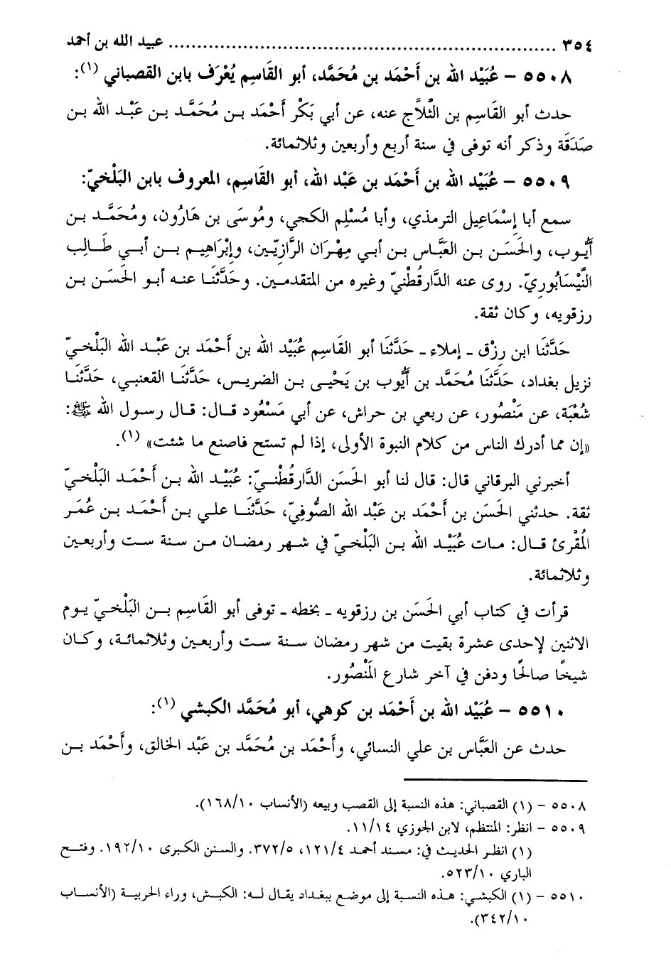 5508 عبيد اللَّه بْن أَحْمَد بْن مُحَمَّد، أَبُو القاسم يعرف بابن القصباني [1] :