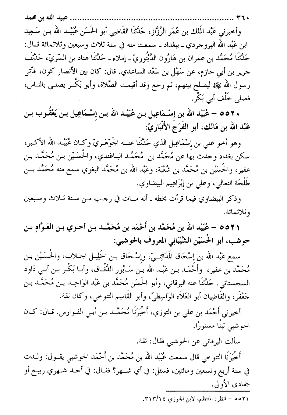 [1] 5521 انظر: المنتظم، لابن الجوزي 14/313.