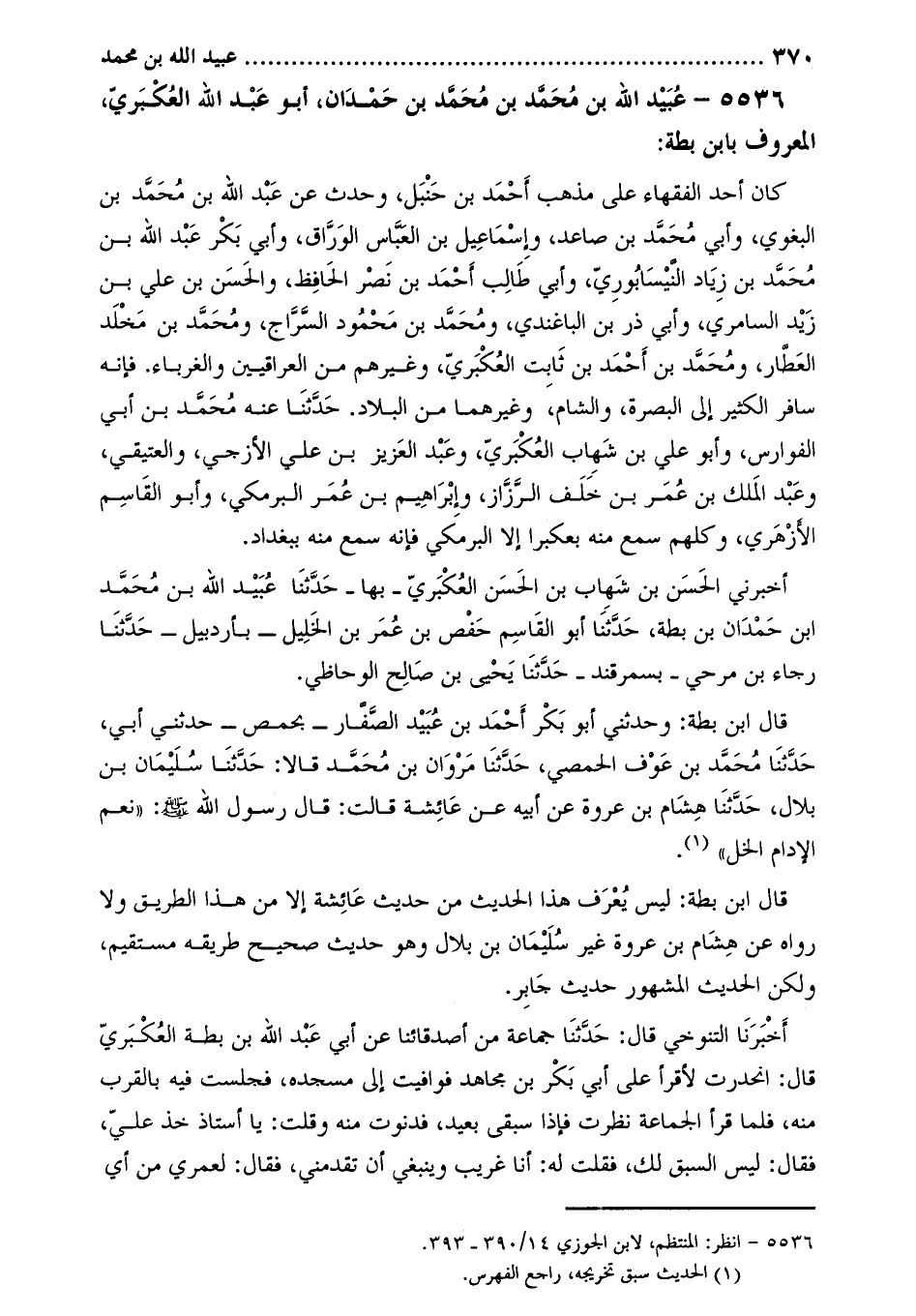 5536 عبيد اللَّه بْن مُحَمَّد بْن مُحَمَّد بْن حمدان، أبو عبد الله العكبري، المعروف بابن بطة [1] :