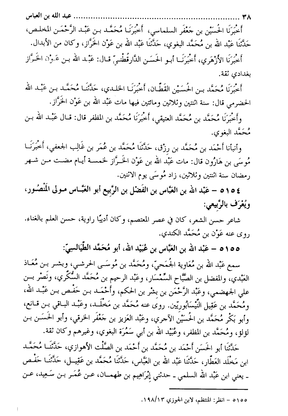 5154- عبد اللَّه بن العباس بن الفضل بن الربيع أبو العباس مولى المنصور، ويعرف بالربيعي:
