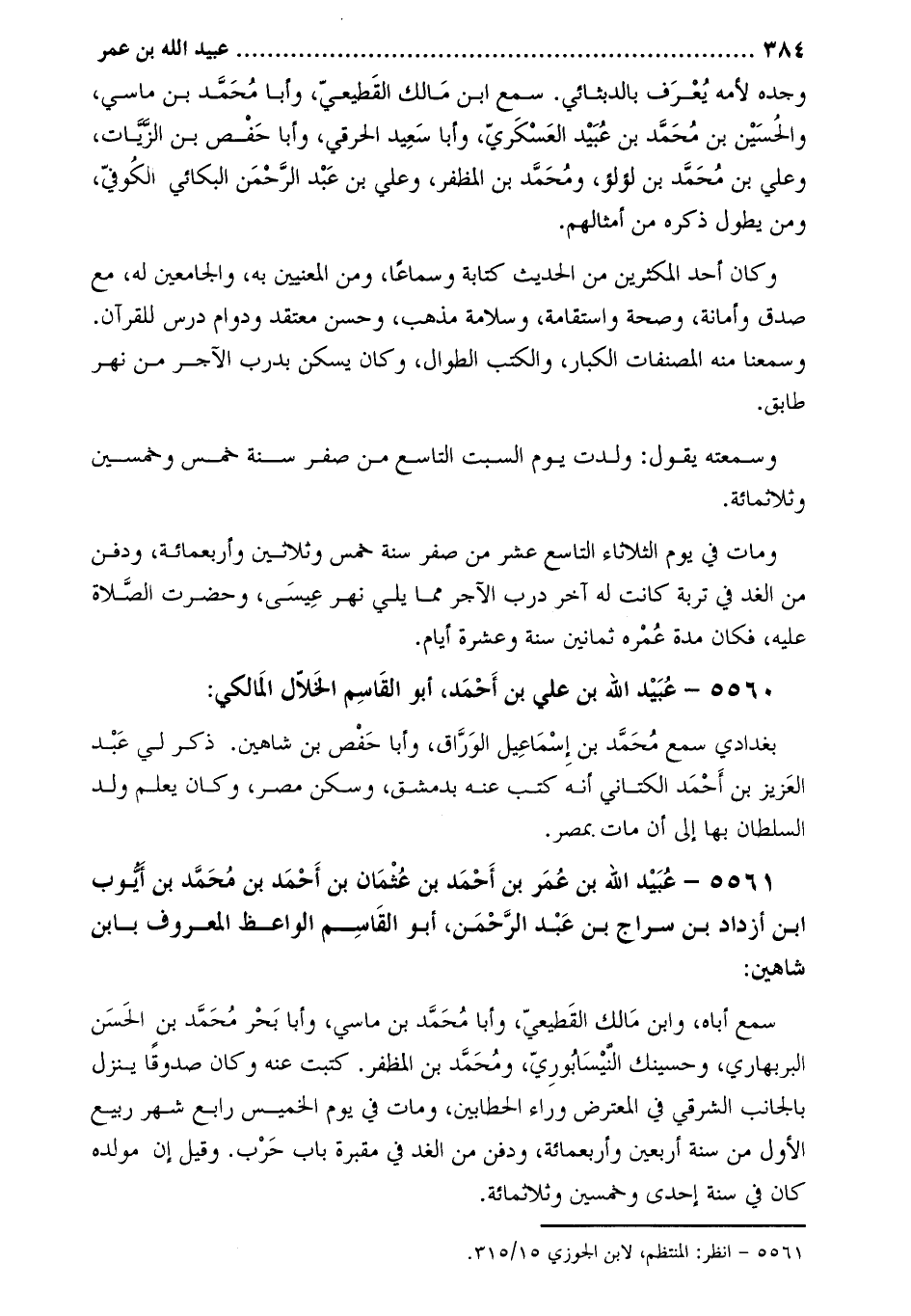 [1] 5561- انظر: المنتظم، لابن الجوزي 15/315.