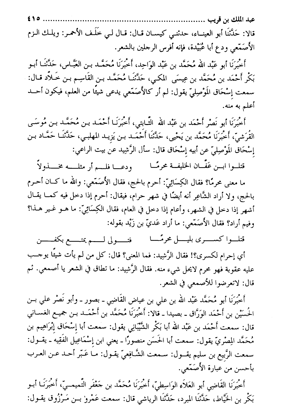 سمعت الرّبيع بن سليم يقول: سمعت الشافعي يقول: ما عبر أحد عن العرب بأحسن من عبارة الأصمعي.