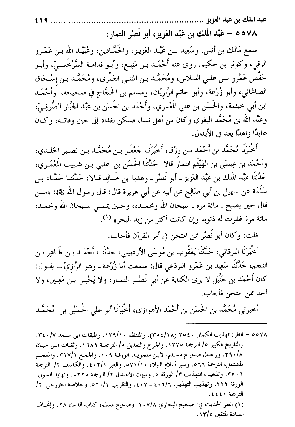 [1] 5578- انظر: تهذيب الكمال 3540 (18/354) . والمنتظم 10/139. وطبقات ابن سعد 7/340.