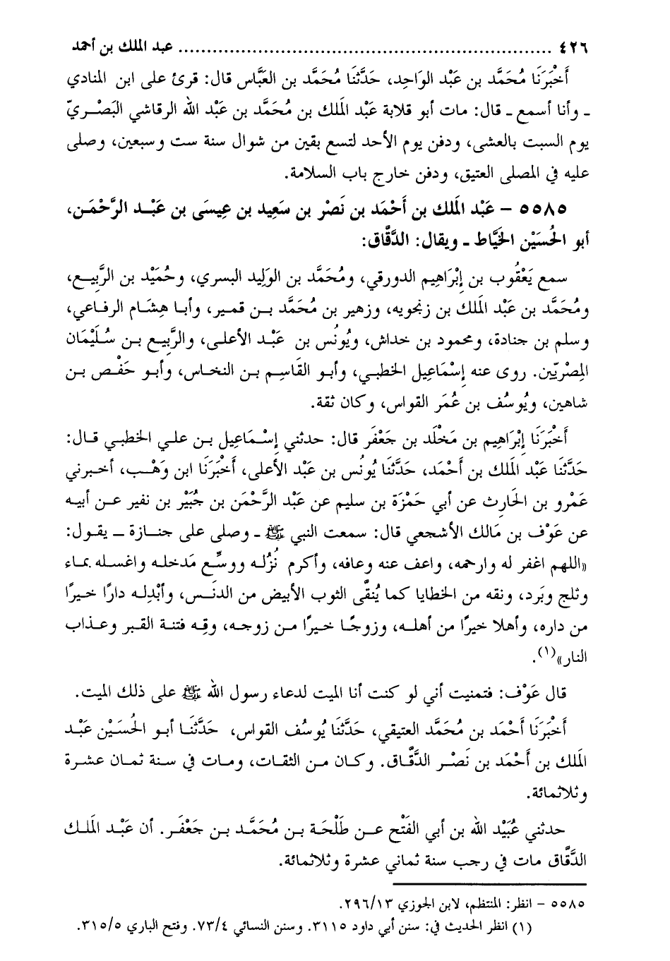 [1] 5585- انظر: المنتظم، لابن الجوزي 13/296.