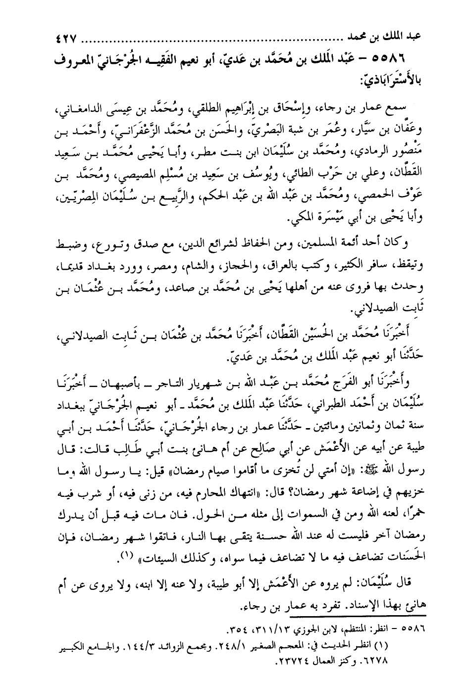 5586- عبد الملك بن محمد بن عدي، أبو نعيم الفقيه الجرجاني المعروف بالاستراباذي [1] :