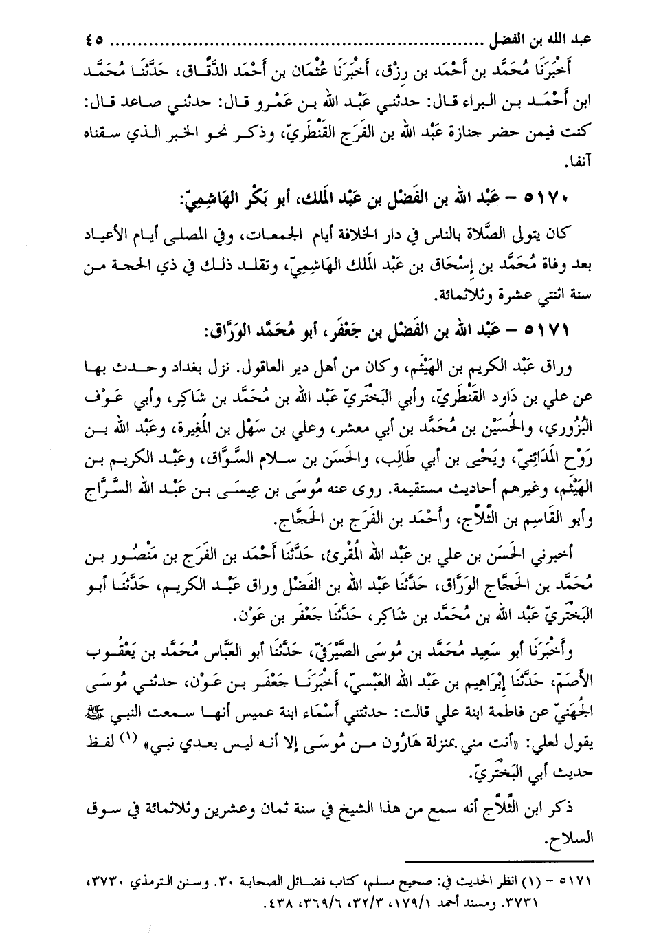 5171 عبد اللَّه بن الفضل بن جعفر، أبو مُحَمَّد الوراق: