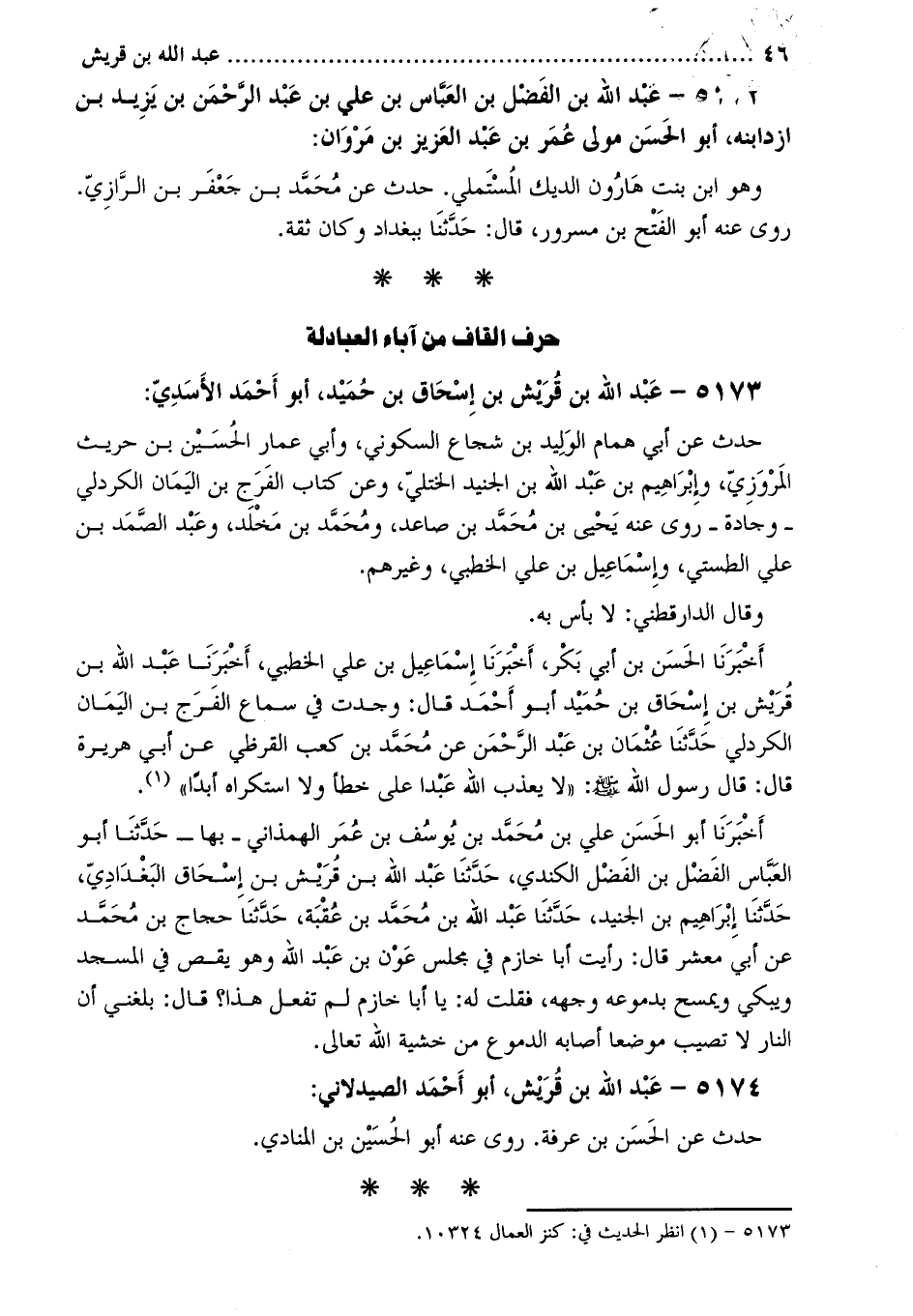 5173 عبد الله بن قريش بن إسحاق بن حميد، أبو أَحْمَد الأسدي: