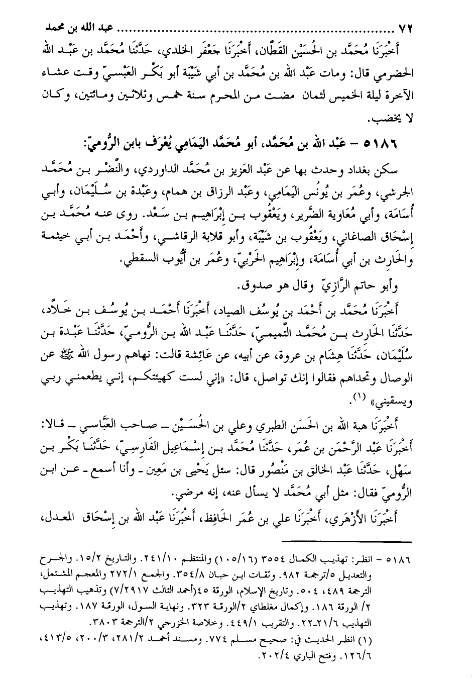 5186 عبد اللَّه بن مُحَمَّد، أبو مُحَمَّد اليمامي يعرف بابن الرومي [1] :