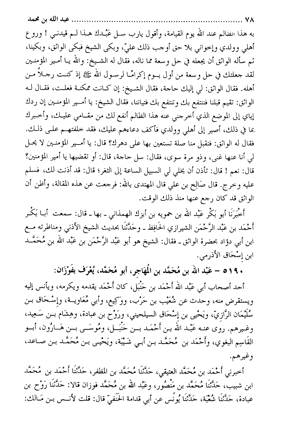 5190- عبد اللَّه بن مُحَمَّد بن المهاجر، أبو محمّد، يعرف بفوزان: