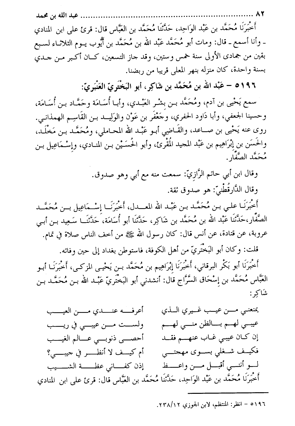 5196 عبد اللَّه بن مُحَمَّد بن شاكر، أبو البخترى العنبري [1] :