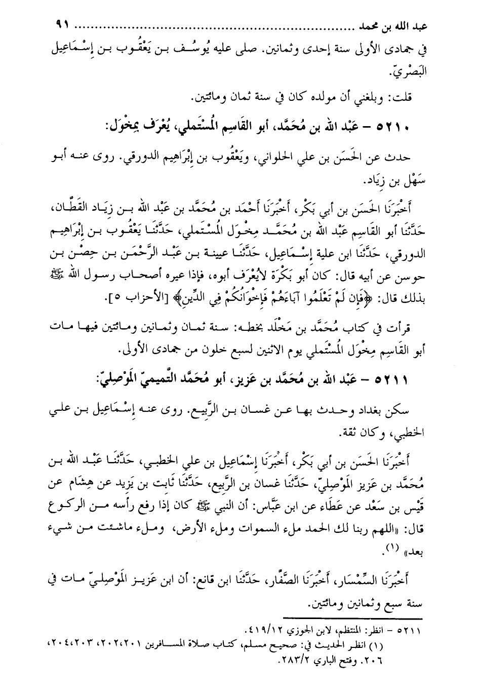 [1] 5211 انظر: المنتظم، لابن الجوزي 12/419.