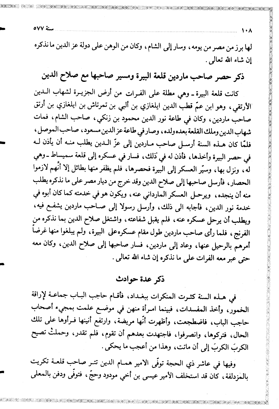 $ ذكر حصر صاحب ماردين قلعة البيرة ومسير صاحبها مع صلاح الدين $