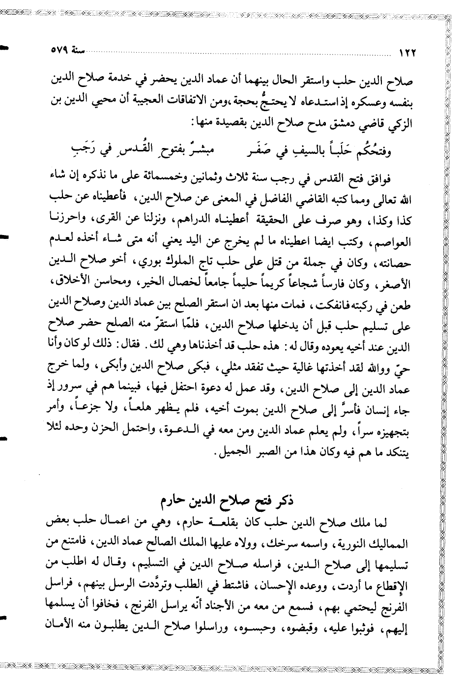 ( وفتحكم حلبا بالسيف في صفر ... مبشر بفتوح القدس في رجب )
