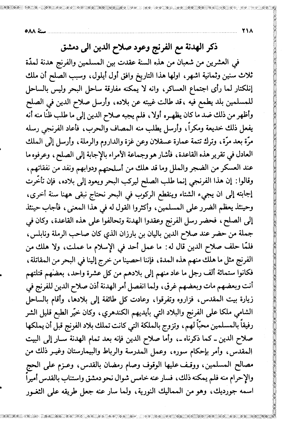ذكر الهدنة مع الفرنج وعود صلاح الدين الى دمشق $
