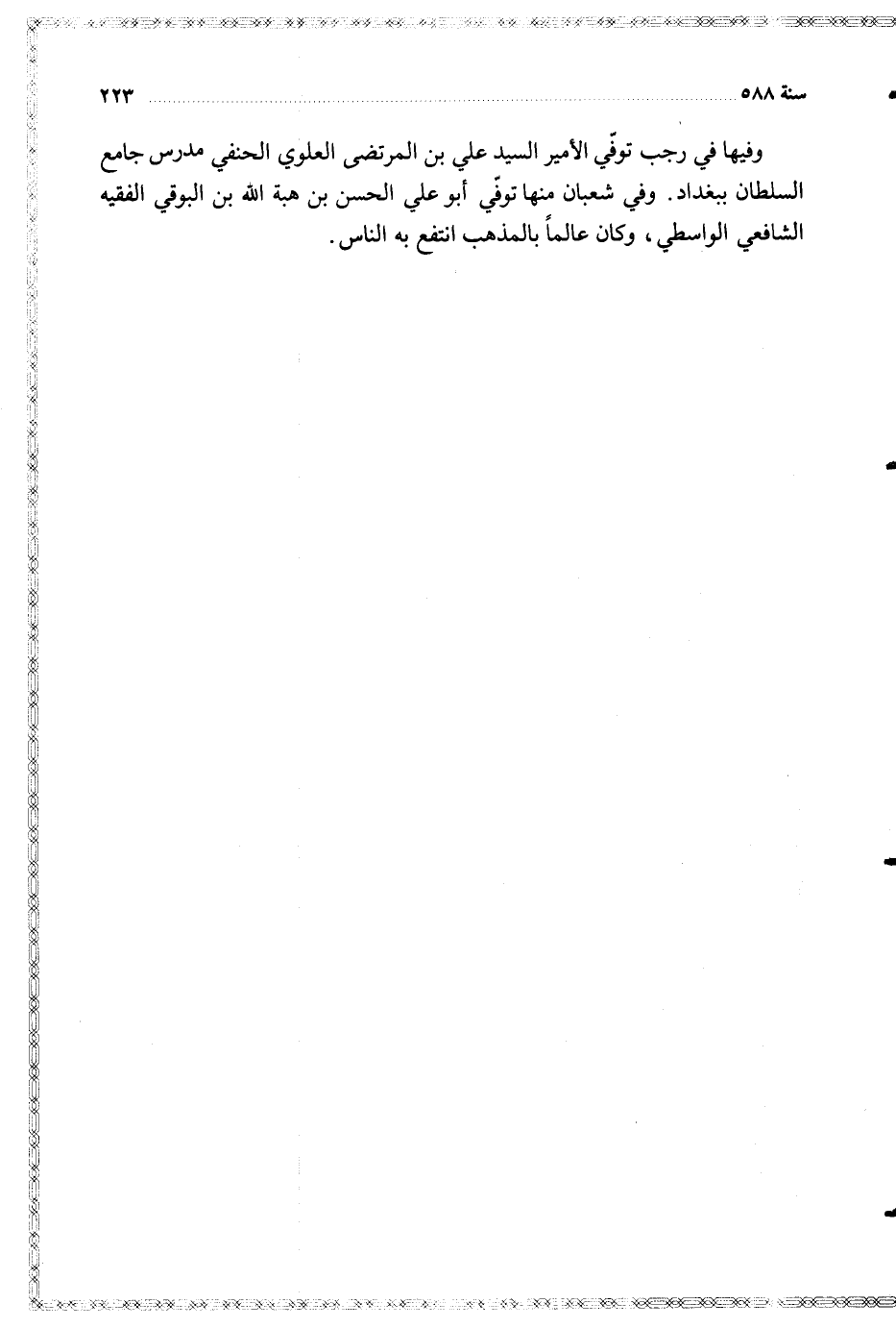 وفيها في رجب توفي الأمير السيد علي بن المرتضى العلوي الحنفي مدرس جامع السلطان ببغداد