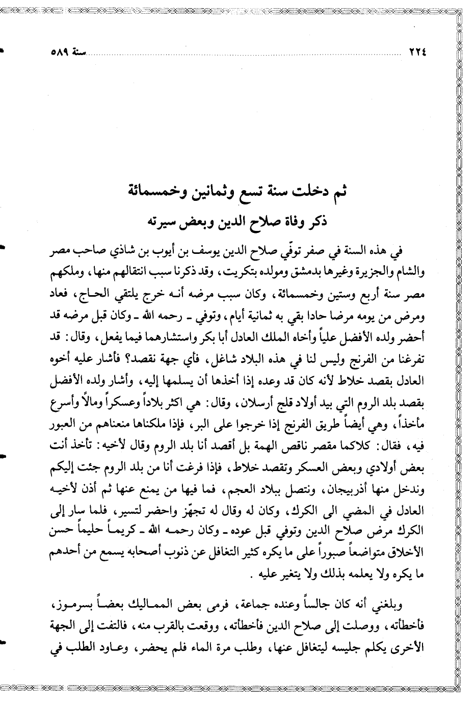 $ ثم دخلت سنة تسع وثمانين وخمسمائة $