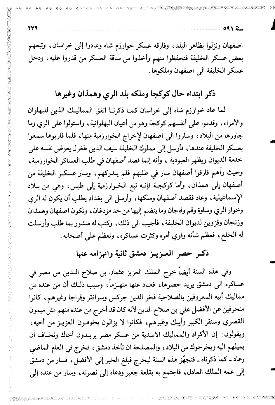 اصفهان ونزلوا بظاهر البلد وفارقه عسكر خوارزم شاه وعادوا إلى خراسان وتبعهم بعض عسكر الخليفة فتحفظوا منهم وأخذوا من ساقة العسكر من قدروا عليه ودخل عسكر الخليفة الى اصفهان وملكوها