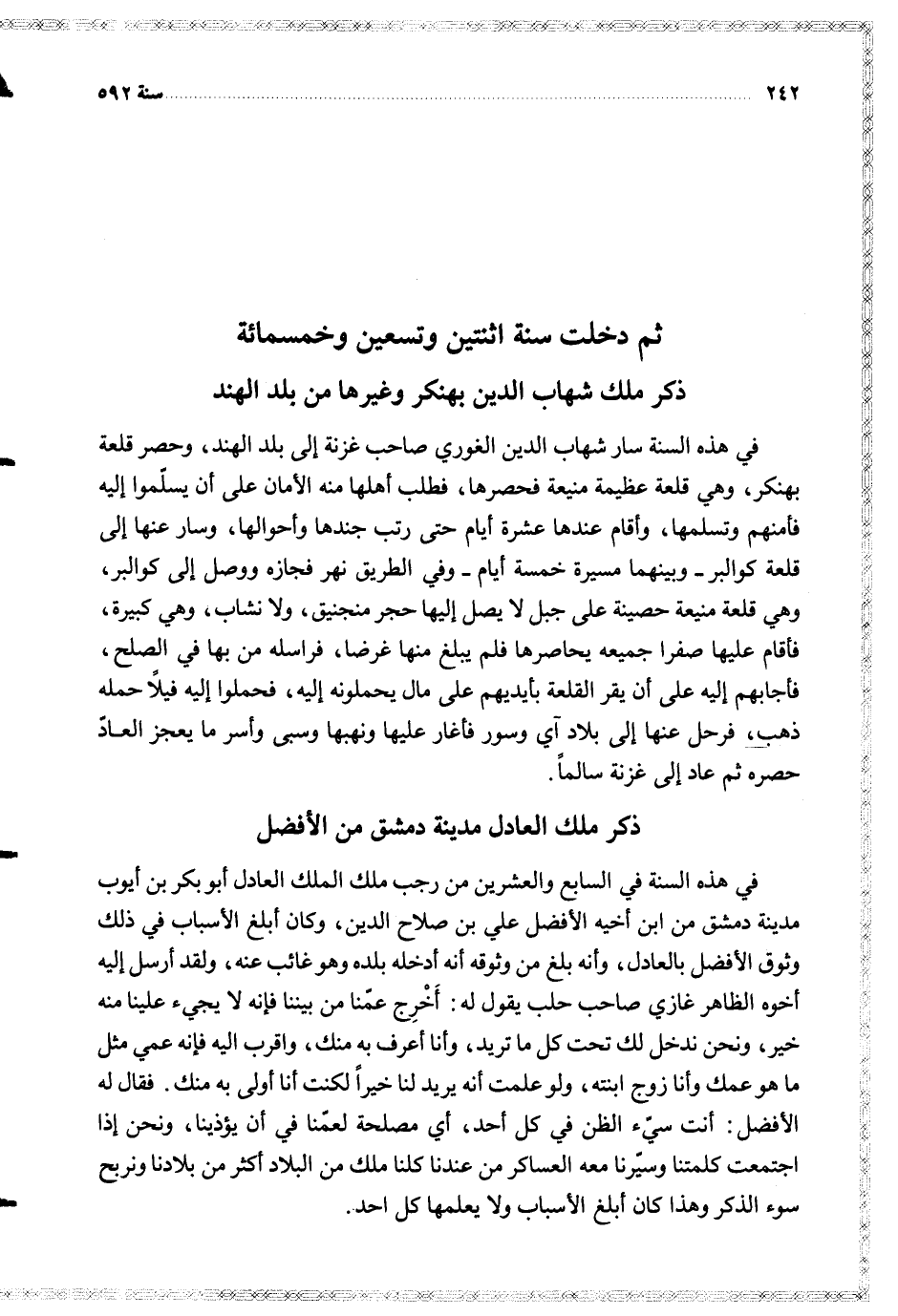 $ ثم دخلت سنة اثنتين وتسعين وخمسمائة $