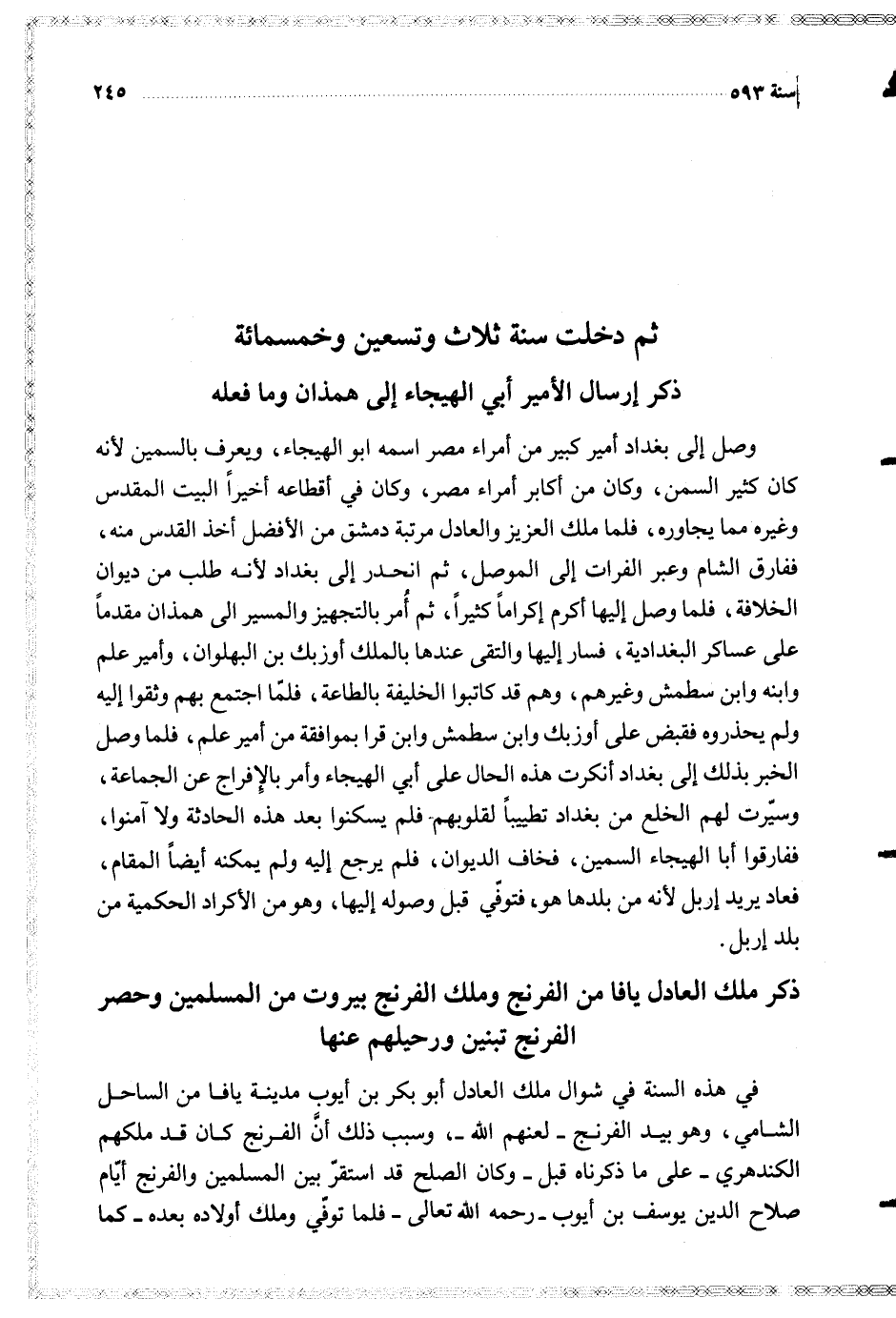 $ ثم دخلت سنة ثلاث وتسعين وخمسمائة $