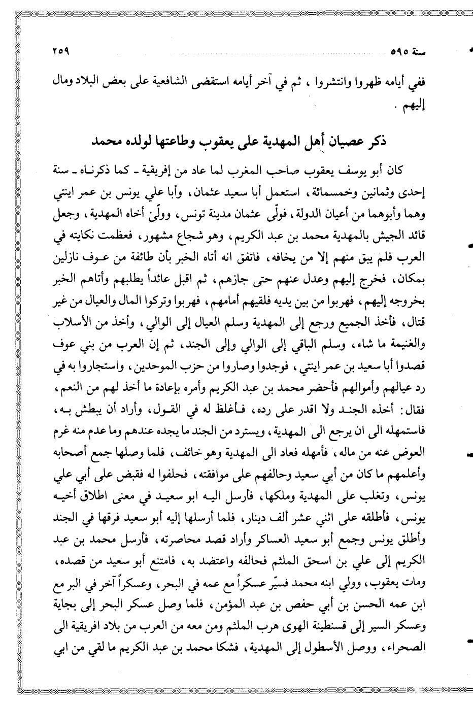 $ ذكر عصيان أهل المهدية على يعقوب وطاعتها لولده محمد $