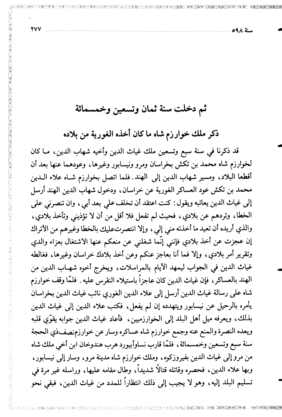 قد ذكرنا في سنة وتعسين ملك غياث الدين أوخيه شهاب الدين ما كان لخوارزم شاه محمد بن تكش بخراسان ومرو ونيسابور وغيرها وعودهما عنها بعد إن أقطعا البلاد ومسير شهاب الدين إلى الهند