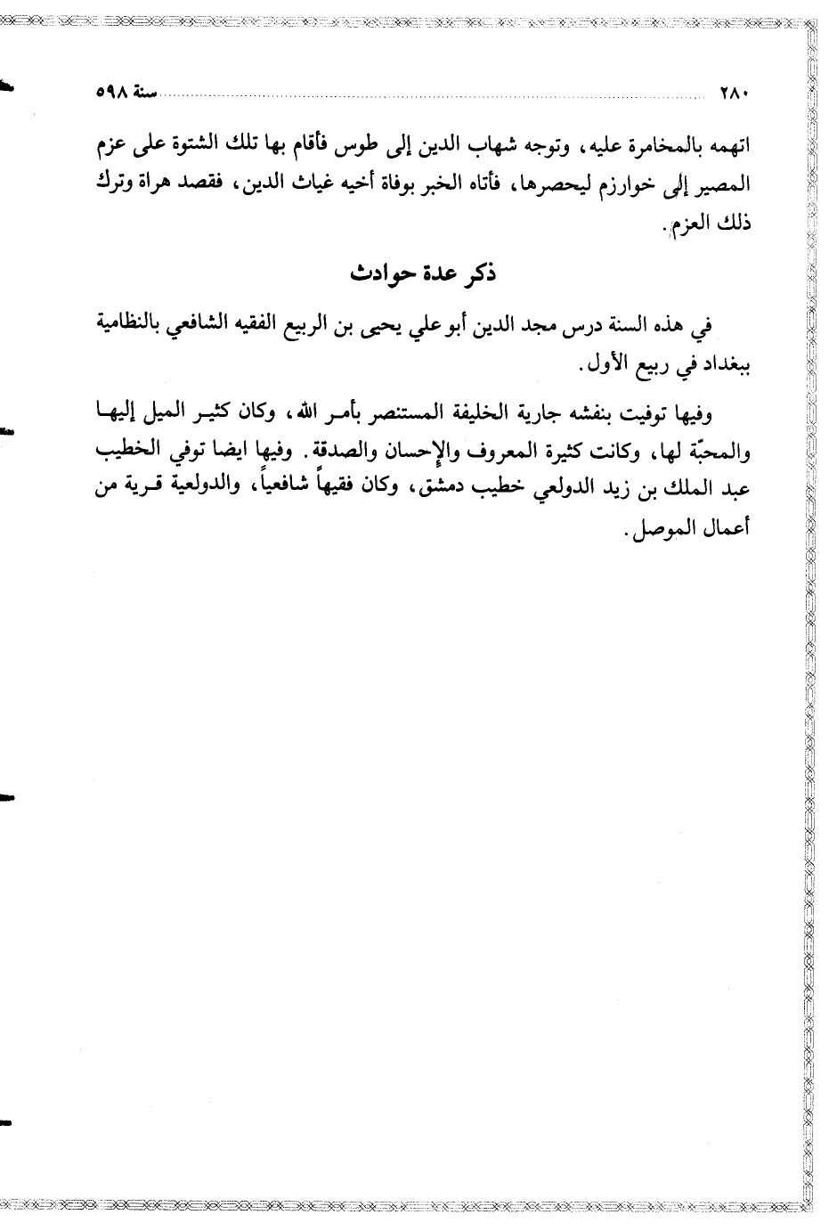 في هذه السنة درس مجد الدين أبو علي يحيى بن الربيع الفقيه الشافعي بالنظامية ببغداد في ربيع الأول