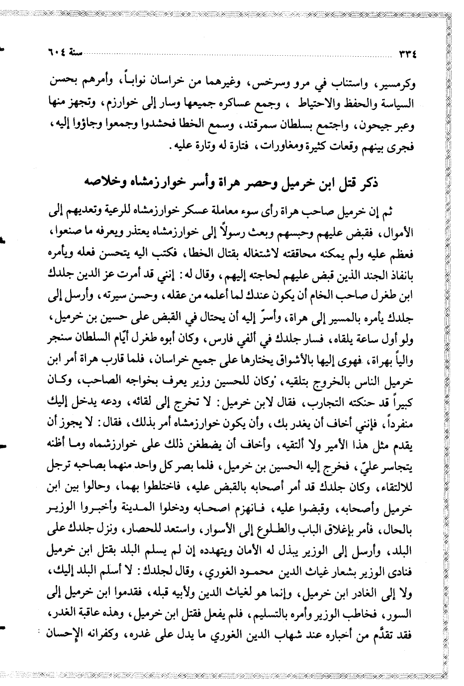 $ ذكر قتل ابن خرميل وحصر هراة وأسر خوارزمشاه وخلاصه $
