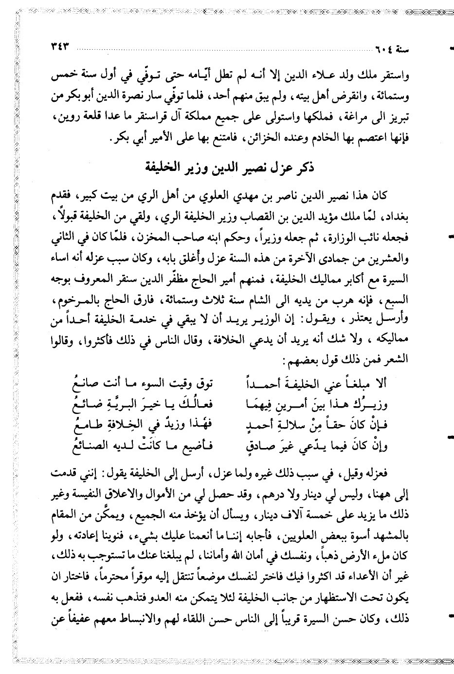 $ ذكر عزل نصير الدين وزير الخليفة $