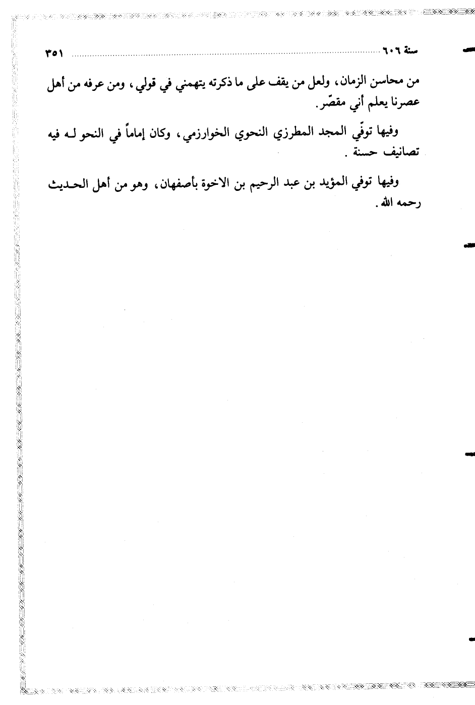 وفيها توفي المجد المطرزي النحوي الخوارزمي وكان إماما في النحو له فيه تصانيف حسنة