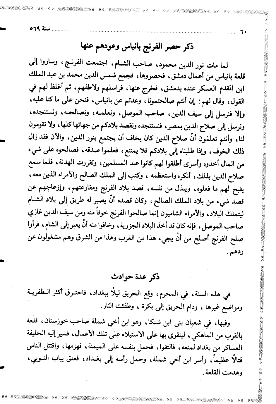 لما مات نور الدين محمود صاحب الشام اجتمعن الفرنج وساروا إلى قلعة بانياس من أعمال دمشق فحصروها فجمع شمس الدين محمد بن عبد الملك ابن المقدم العسكر عنده بدمشق فخرج عنها فراسلهم ولاطفهم ثم أغلظ لهم في القول وقال لهم إن أنتم صالحتمونا وعدتم عن بانياس فنحن على ما كنا عليه وإلا فنرسل إلى سيف الدين صاحب الموصل ونعلمه ونصالحه ونستنجده ونرسل إلى صلاح الدين بمصر فنستنجده ونقصد بلادكم من جهاتها كلها ولا تقومون لنا وأنتم تعلمون أن صلاح الدين كان يخاف أن يجتمع بنور الدين والآن فقد زال ذلك الخوف وإذا طلبناه إلى بلادكم فلا يمتنع فعلموا صدقه فصالحوه على شيء من المال أخذوه وأسرى أجطلقوا لهم كانوا عند المسلمين وتقررت الهدنة فلما سمع صلاح الدين بذلك أنكره واستعظمه وكتب إلى الملك الصالح والأمراء الذين معه يقبح لهم ما فعلوه ويبذل من نفسه قصد بلاد الفرنج ومقارعتهم وإزعاجهم عن قصد شيء من بلاد الملك الصالح وكان قصده أن يصير له طريق إلى بلاد الشام ليتملك البلاد والأمراء الشاميون إنما صالحوا الفرنج خوفا منه ومن سيف الدين غازي صاحب الموصل فإنه كان قد أخذ البلاد الجزرية وخافوا منه أن يعبر إلى الشام فرأوا صلح الفرنج أصلح من أن يجيء هذا من الغرب وهذا من الشرق وهم مشغولون عن ردهم