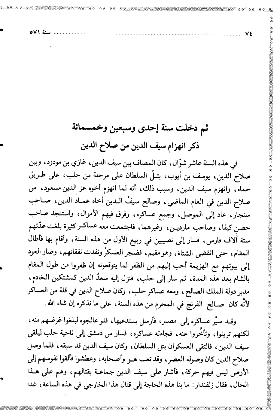 $ ثم دخلت سنة إحدى وسبعين وخمسمائة $