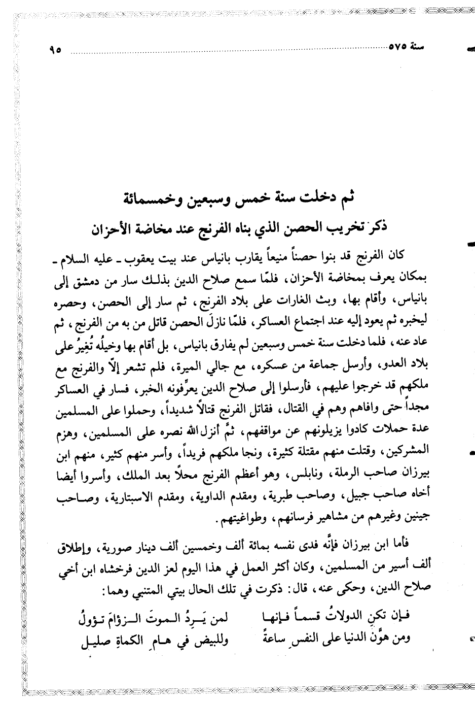 $ ثم دخلت سنة خمس وسبعين وخمسمائة $