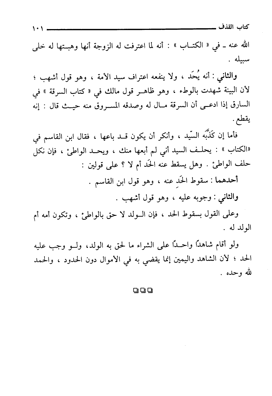 والثاني: أنه يُحَد، ولا ينفعه اعتراف سيد الأمة، وهو قول أشهب؛ لأن البينة شهدت بالوطء، وهو ظاهر قول مالك في "كتاب السرقة" في السارق إذا ادعى أن السرقة مال له وصدقه المسروق منه حيث قال: إنه يقطع.