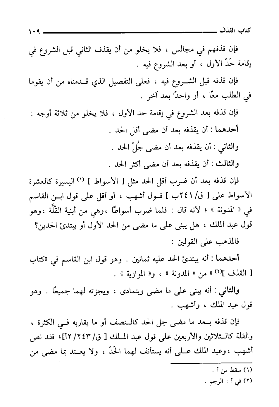 فإن قذفهم في مجالس، فلا يخلو من أن يقذف الثاني قبل الشروع في إقامة حَدّ الأول، أو بعد الشروع فيه.