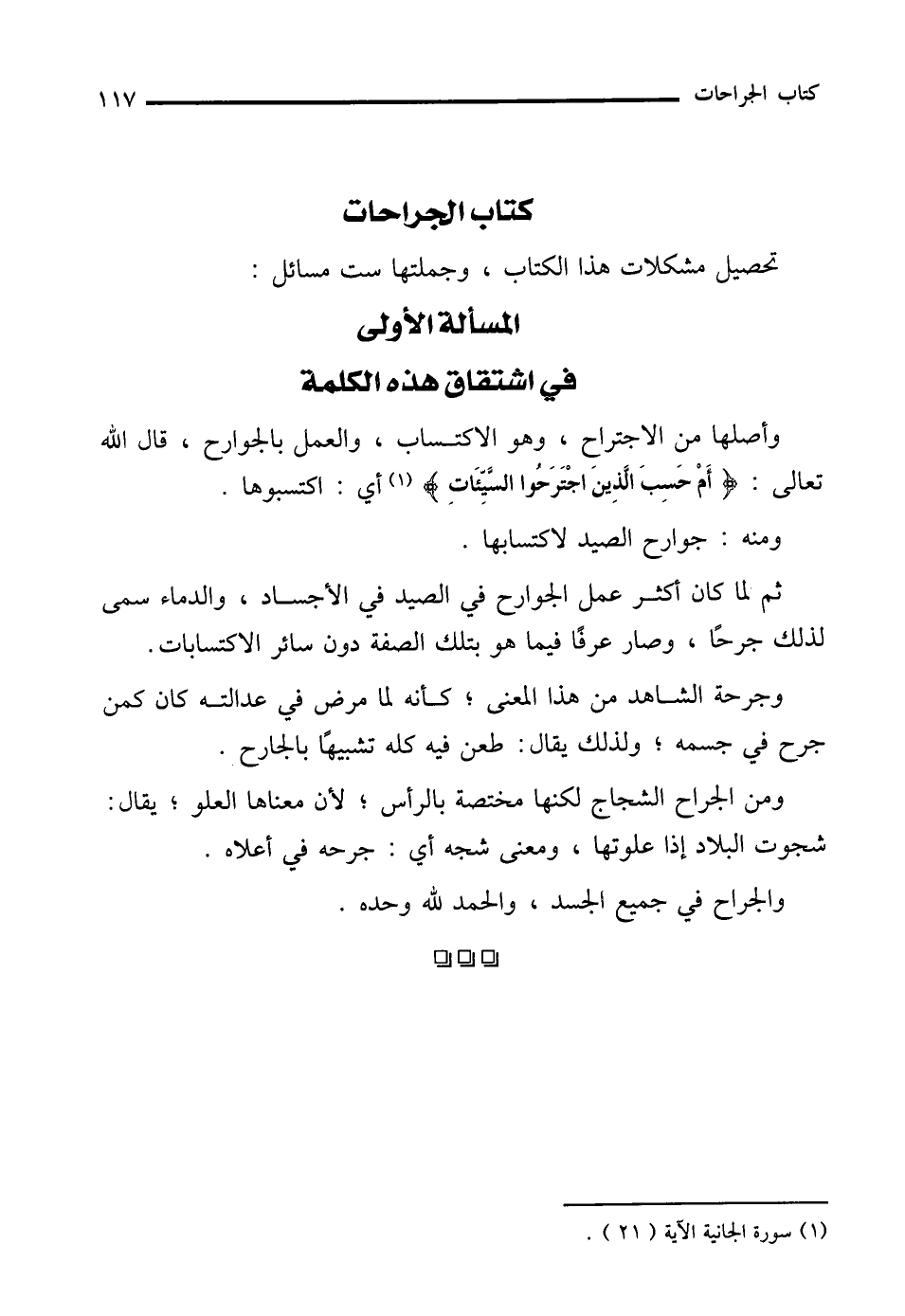 ثم لما كان أكثر عمل الجوارح في الصيد في الأجساد، والدماء سمى لذلك جرحًا، وصار عرفًا فيما هو بتلك الصفة دون سائر الاكتسابات.