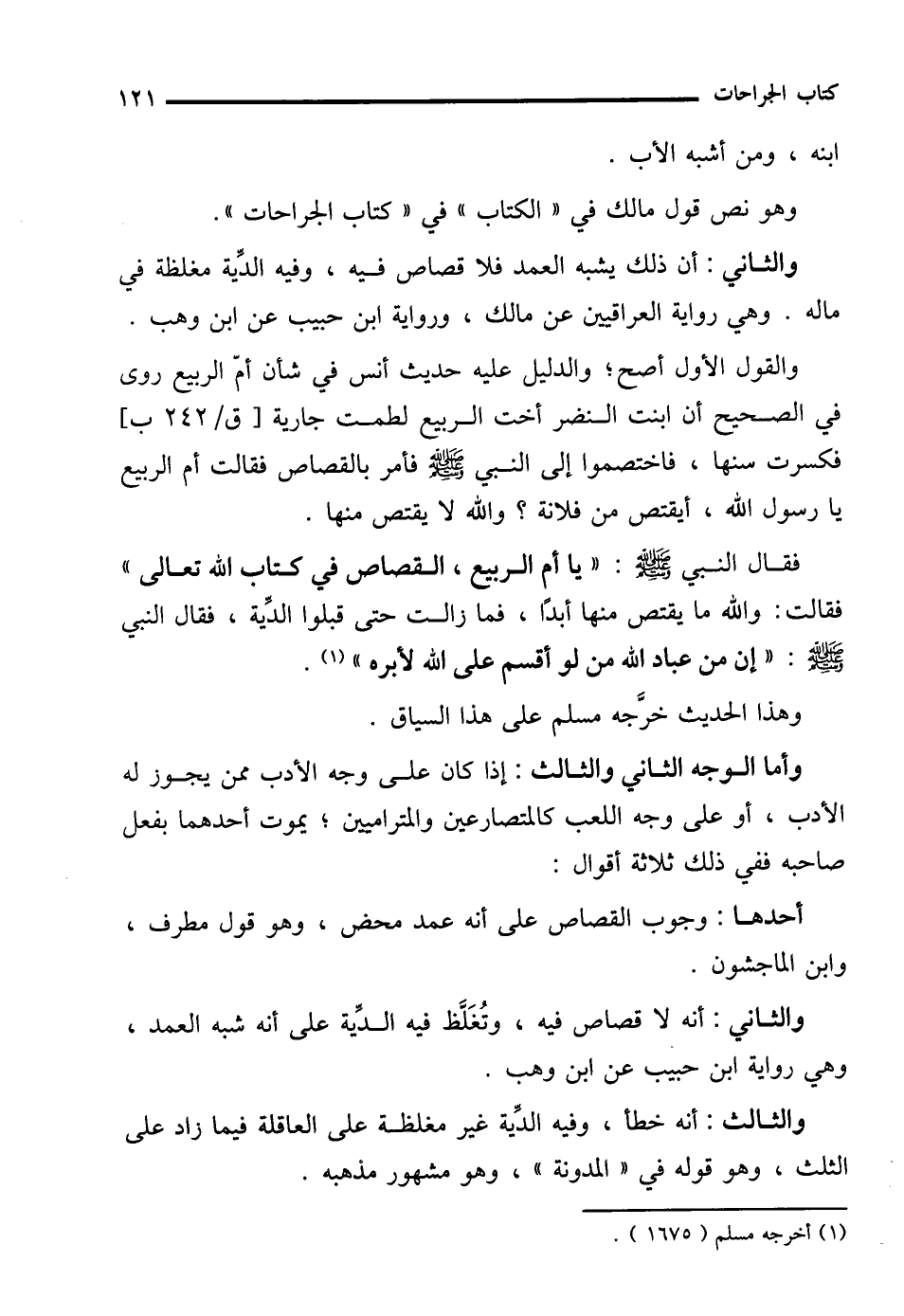 وهو نص قول مالك في "الكتاب" في "كتاب الجراحات".